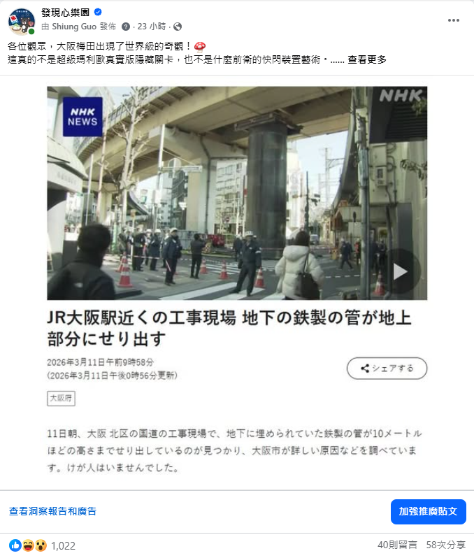 2026大阪梅田出現真實版瑪利歐水管?JR大阪站前驚現高達10公尺的巨大鐵管衝出路面,隨後竟又慢慢「縮回地底」!帶你回顧這起引起20萬網友圍觀的超荒謬日本奇聞,內附超療癒的下班縮時攝影,去大阪購物自由行千萬別錯過這種超有戲的路上風景!…